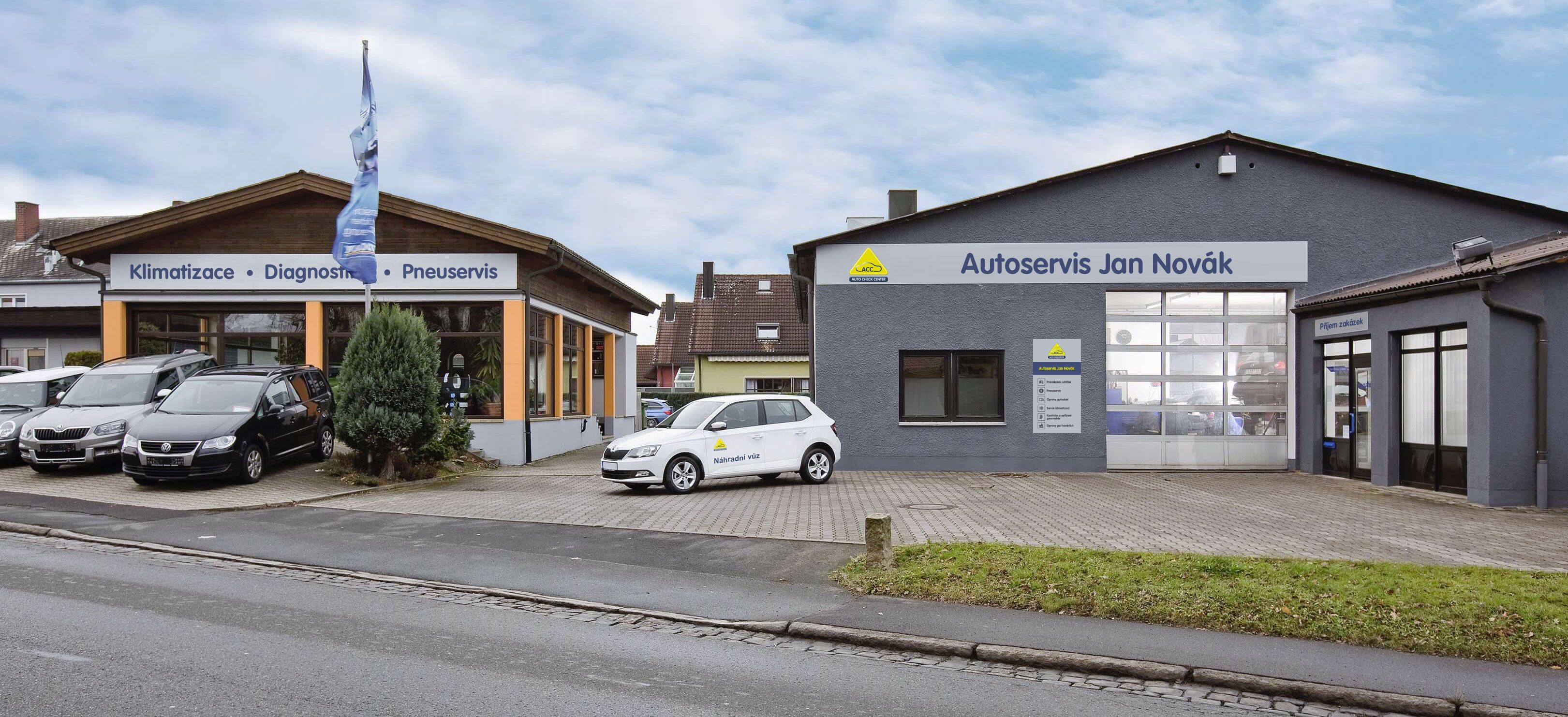 Diagnostika motorů Kontrola a seřízení geometrie Myčka aut Pneuservis Přímý příjem Servis klimatizací